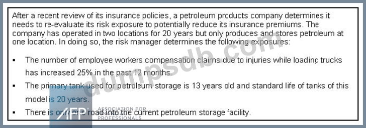 if the risk manager adds a tank at its second facility, what loss control technique is being used?