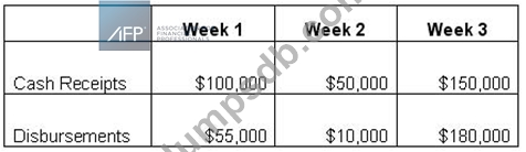 A company has a beginning cash balance of $50,000. Its weekly cash flow forecast shows the following information for the next three weeks.