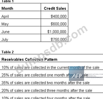 The company's receivables collection pattern is in Table 2. If this company's accounts receivable on March 31 is $0, what would the accounts receivable balance be at the end of July? Assume a 90-day quarter.