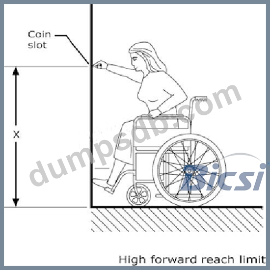 Exhibit: A pay telephone using coins needs to be installed in a public area. In the specifications, it is required that the telephone shall meet the ADA (American with Disabilities Act) requirement for front reach using a wheelchair. What will be the maximum reachable height or the value of "X"?