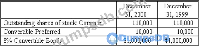 2 0,000 shares of common stock. The 8 percent bonds are convertible into 30,000 shares of common stock. Net income for 2000 was $850,000. Assume the income tax rate is 30 percent. The basic earnings per share for 2000 is: