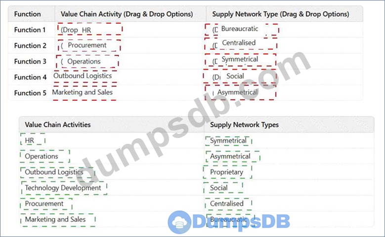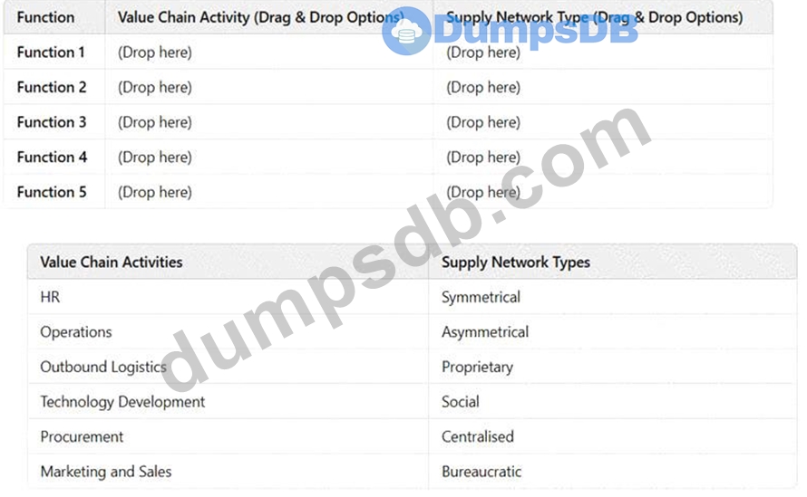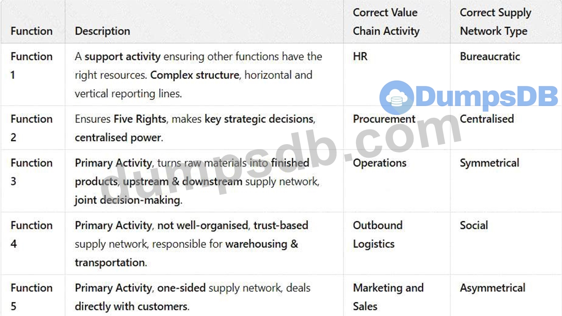 For eachfunction, select the correctValue Chain ActivityandSupply Network Typefrom the given options.