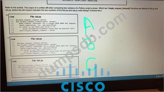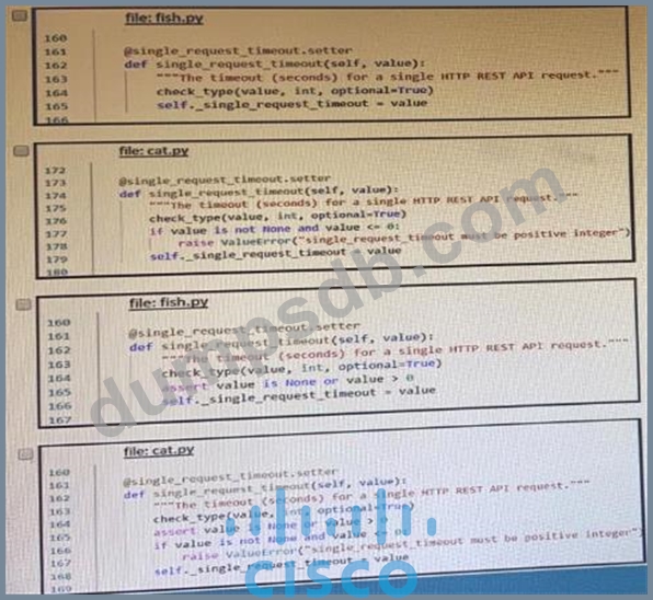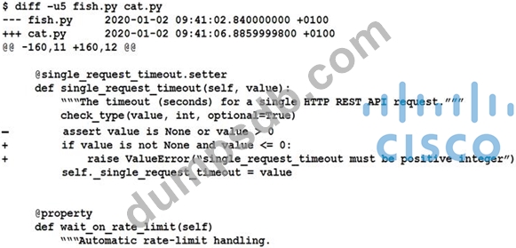 The output of a unified diff when comparing two versions of a python script is shown. Which two "single_request _timeout ()"