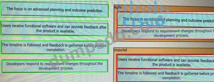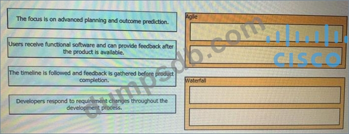 Drag and drop the characteristics from the left onto the corresponding software development methodologies on the right?