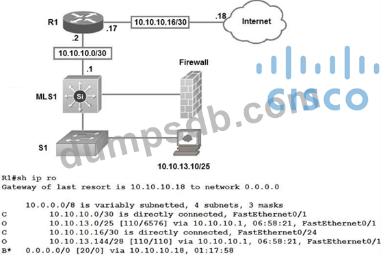 Refer to the exhibit. Which type of route does R1 use to reach host 10.10.13.10/32?