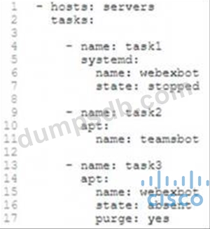 A developer must integrate a bot with an internal communication app. The developer wants to replace the webexbot package with the teamsbot package by using Ansible and prepares a playbook In the first two tasks, the playbook stops the webexbot and verifies that the teamsbot is installed. What is accomplished in the last task of the workflow when the developer runs the Ansible playbook?