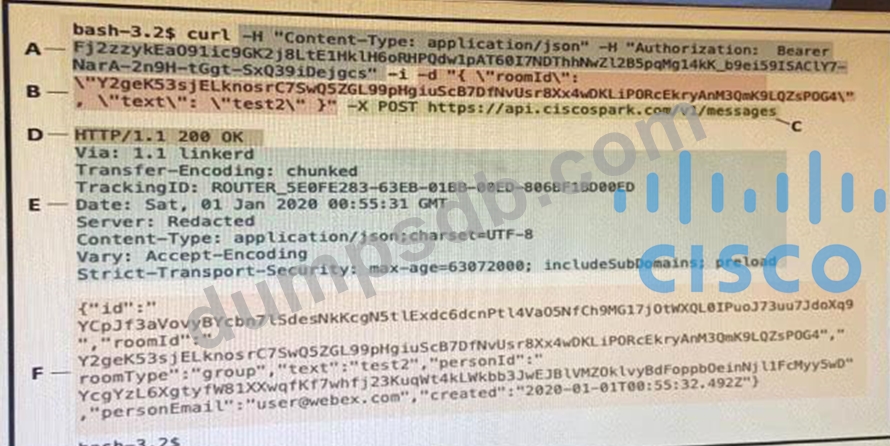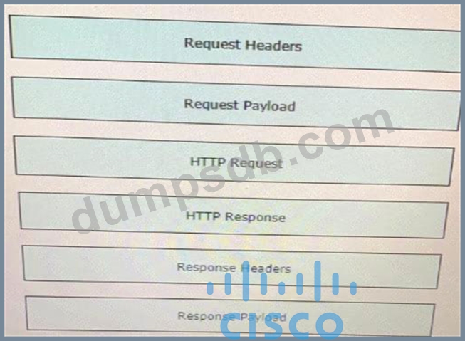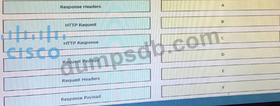 Drag and drop the descriptors from the left onto the correct parts of the API request and response on the right.