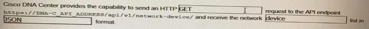 Cisco DNA provide the capability to send an HTTP _______________ request to the API endpoint https://DNA-c_API_ADDRESS/api/vi/network-device/ and receive the network __________ list in __________ format.