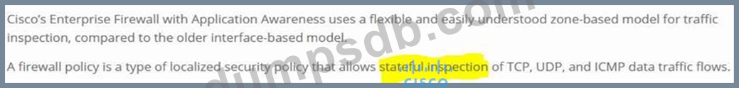 A network administrator is configuring an application-aware firewall between inside zones to an outside zone on a WAN edge router using vManage GUI. What kind of Inspection is performed when the ''inspect'' action is used?