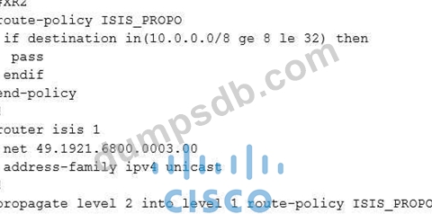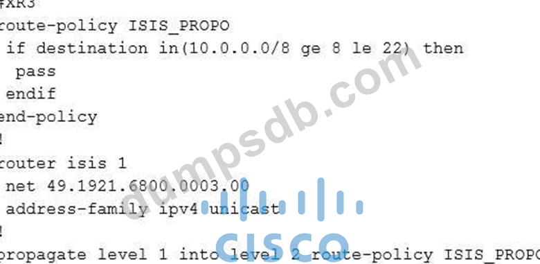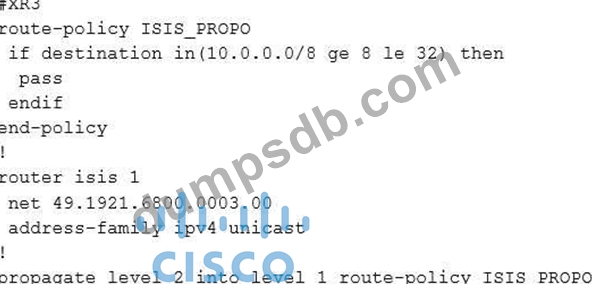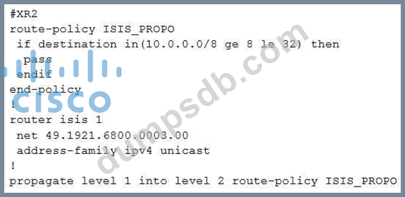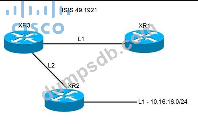 Refer to the exhibit. A network operator must inject a Level 1 route from XR2 (10.16.16.0/24) into the ISIS topology. Which configuration allows the injection in a way that XR3 and XR1 have a valid and working route for 10.16.16.0/24?