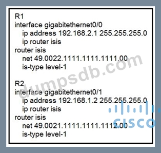 Routers R1 and R2 cannot form a neighbor relationship, but the network is otherwise configured correctly and operating normally. Which two statements describe the problem? (Choose two.)