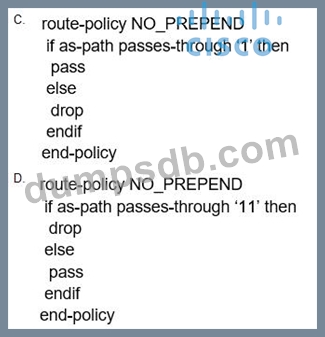 XR1 and XR2 are sending the prefix 10.11.11.0/24 to XR3. A configured policy on XR1 is incorrectly prepending AS path 11 11 12 12 onto this prefix. A network operator wants to add a policy onto XR3 that will not allow the falsely prepending prefix from being installed. Which policy configuration applied to the XR3 neighbor configuration for XR1 can accomplish this requirement without impact to other or future received routes?