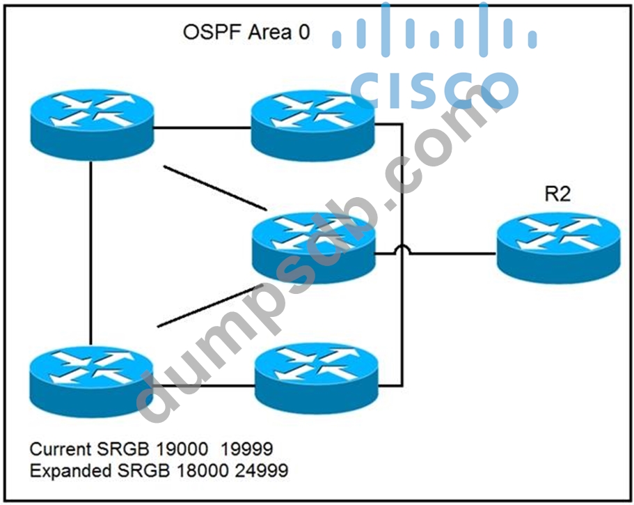A network operator wants to expand the segment routing global block in upcoming maintenance. The operator must ensure that the changes to the segment routing global block have no adverse impacts on the prefix-sid associated with the loopback0 interface used within the OSPF domain.