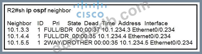 Why is neighbor 10.1.5.5 stuck in "2WAY" state?