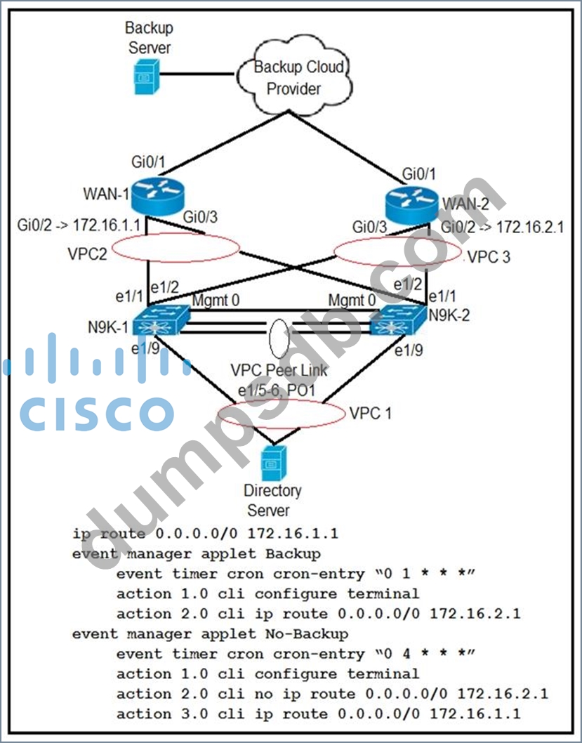 The client says that at the scheduled time for backup, the data center server failed to use the WAN-2 link to back up the servers to the cloud backup system. What is the solution to this problem?