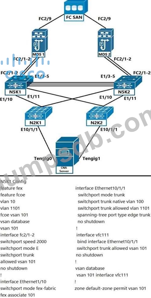 Refer to the exhibits. An engineer troubleshoots switch N5K1, which fails to receive traffic from the file server.