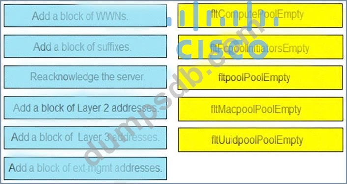 Drag and drop the actions from the left onto the faults that they resolve on the right. Not all options are used.