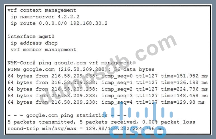 A network engineer has connected the Nexus switch management port to the Internet using DHCP to allow the Guest shell running on the switch to download Python packages. The engineer can ping google.com successfully from the Nexus switch, but the Guest shell failed to download any Python packages. Which action resolves the problem?