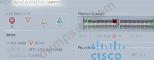 When an engineer inserts 8-Gb FC SFP port 15 on a Cisco UCS Fabric Interconnect, the port fails. What is a possible cause of the issue?