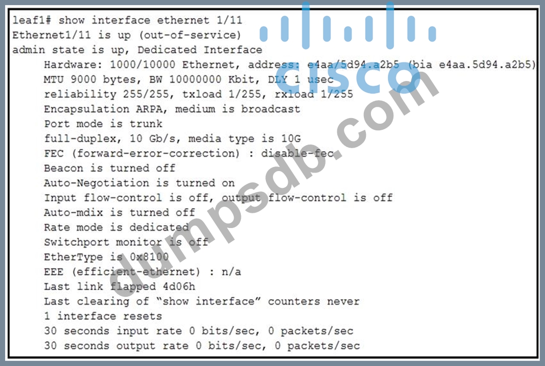 An engineer is performing a health check on ACI. Which statement about interface Ethernet 1/11 is true?