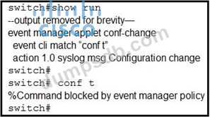 A network engineer configures an EEM script to get a syslog notification after a configuration change. This message appears when the engineer must make a new configuration to this switch. Which configuration did the engineer neglect to apply in the script for it to function properly?