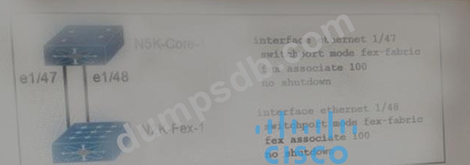 An engineer must connect N2K-Fex-1 and N5K-Core-1 so that the traffic flow between the two devices uses load balancing. After inspecting the statistics of the interconnecting interfaces, the engineer concludes that only one link is used. Which action resolves the problem?