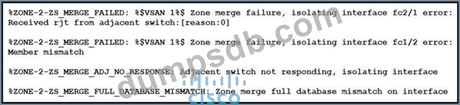 Refer to the exhibit. An engineer deploys a SAN environment with two interconnected Cisco MDS 9000 Series Switches. When the engineer attempts a zone merge, it fails with the error that is presented in the exhibit.