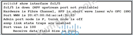Refer to the exhibit. Interface fc1/5 is offline. Which action should be taken to troubleshoot the issue?