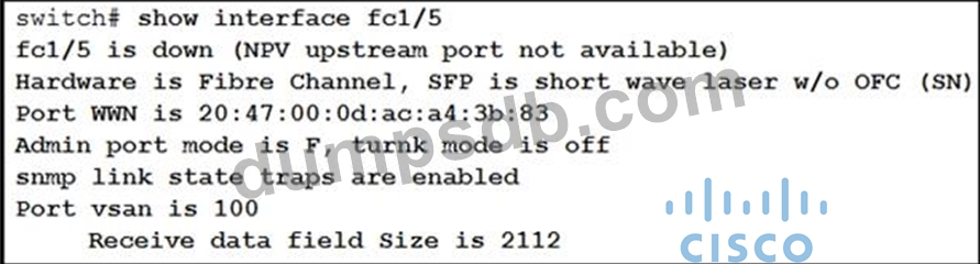 Interface fc1/5 is offline. Which action should be taken to troubleshoot the issue?