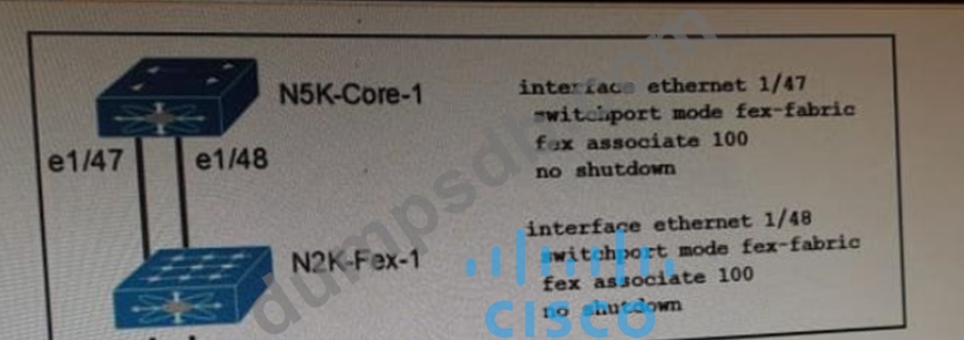 An engineer must connect N2K-Fex-1 and N5K-Core-1 so that the traffic flow between the two devices uses load balancing. After inspecting the statistics of the interconnecting interfaces, the engineer concludes that only one link is used. Which action resolves the problem?