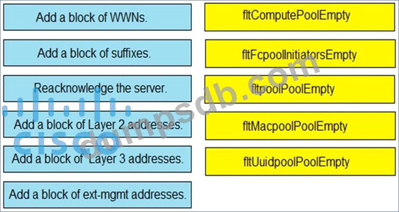 Drag and drop the actions from the left onto the faults that they resolve on the right. Not all options are used.