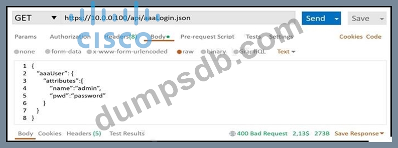 A Postman call to a Cisco APIC fails. The access credentials were confirmed to be configured as expected.