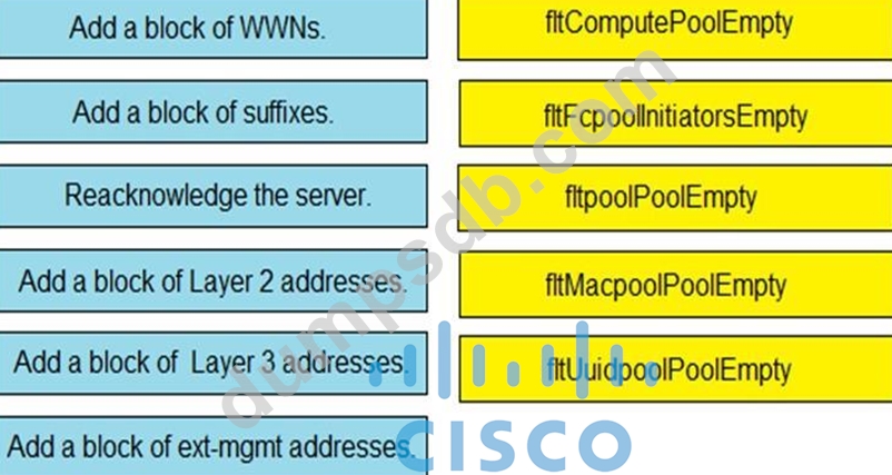 Drag and drop the actions from the left onto the faults that they resolve on the right. Not all options are used.