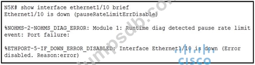 Refer to the exhibit. A network engineer is troubleshooting a Cisco Nexus 5000 Series Switch. The interface between the server and the switch is nonoperational and is expected to operate at 10 Gbps. The drain rate of the interface is 3 Mbps. Which action resolves the issue?