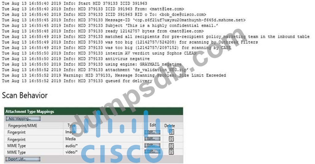 Refer to the exhibit. Which configuration on the scan behavior must be updated to allow the attachment to be scanned on the Cisco ESA?