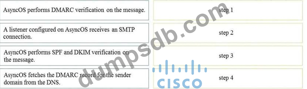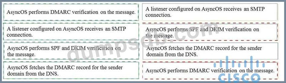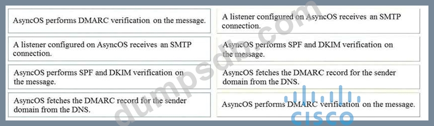 Drag and drop the AsyncOS methods for performing DMARC verification from the left into the correct order on the right.