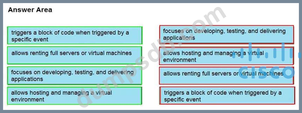 Drag and drop the cloud computing service descriptions from the left onto the cloud service categories on the right.
