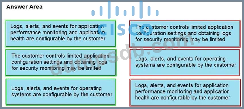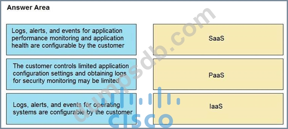 Drag and drop the telemetry-related considerations from the left onto their cloud service models on the right.