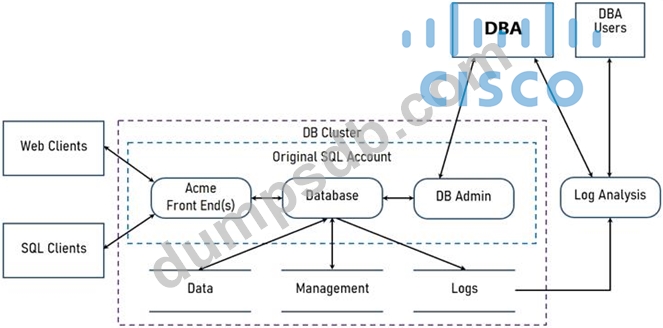 Refer to the exhibit.Two types of clients are accessing the front ends and the core database that manages transactions, access control, and atomicity. What is the threat model for the SQL database?