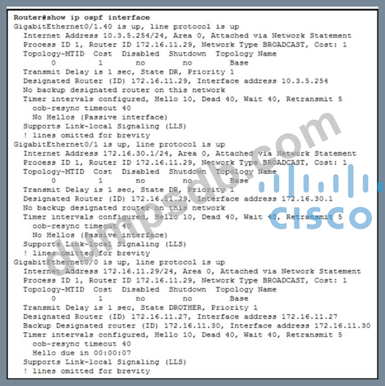 A network engineer configures OSPF and reviews the router configuration. Which interface or interface or interface are able to establish OSPF adjacency?