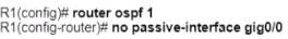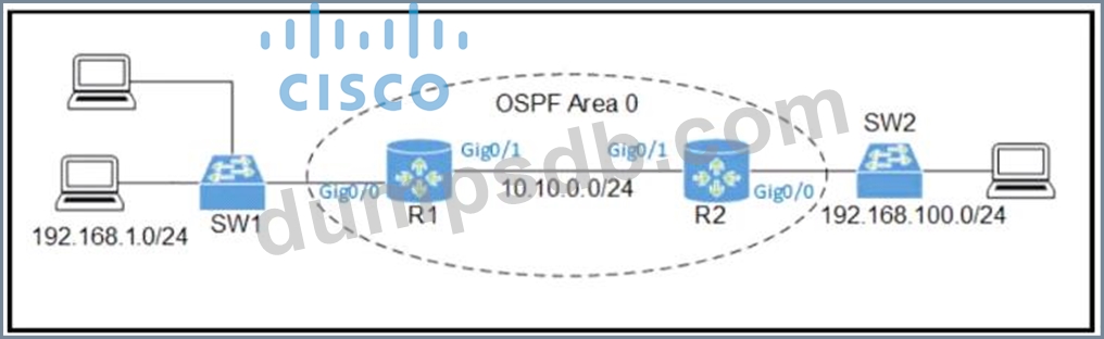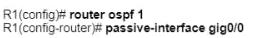 An engineer must allow R1 to advertise the 192 168.1 0/24 network to R2 R1 must perform this action without sending OSPF packets to SW1 Which command set should be applied?