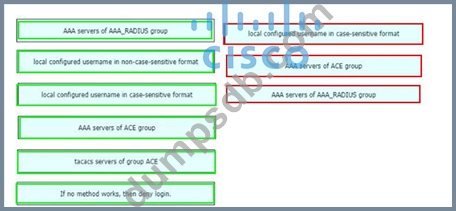 An engineer creates the configuration below. Drag and drop the authentication methods from the left into the order of priority on the right. Not all options are used.