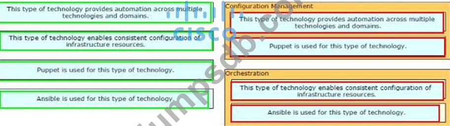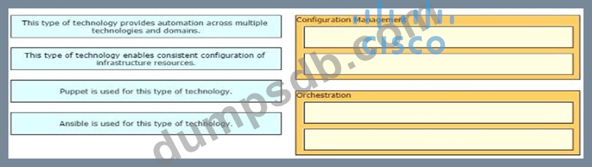 Drag and drop the characteristics from the left onto the orchestration tools that they describe on the right.