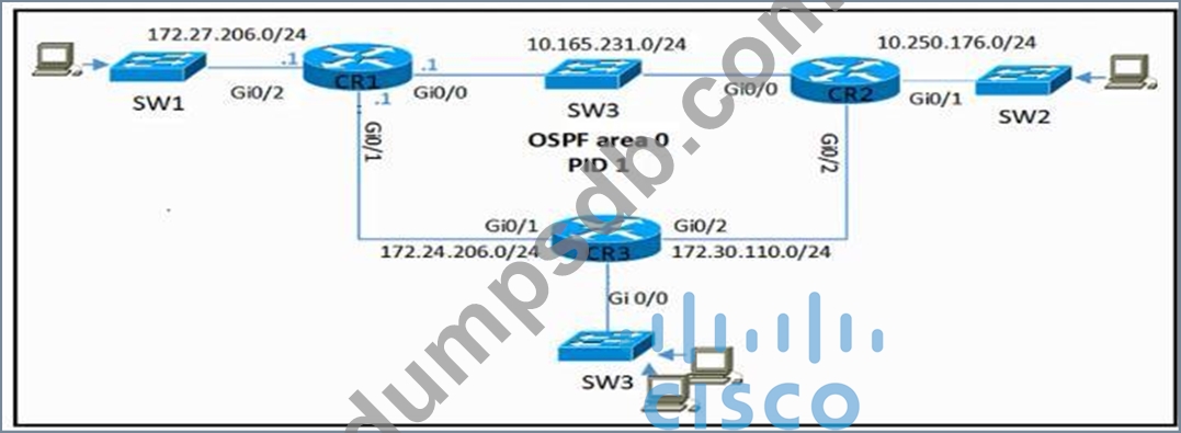 CR2 and CR3 ate configured with OSPF. Which configuration, when applied to CR1. allows CR1 to exchange OSPF Information with CR2 and CR3 but not with other network devices or on new Interfaces that are added to CR1?