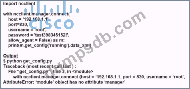 Running the script causes the output in the exhibit. Which change to the first line of the script resolves the error?