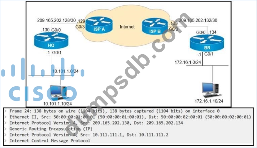 A GRE tunnel has been created between HO and BR routers. What is the tunnel IP on the HQ router?