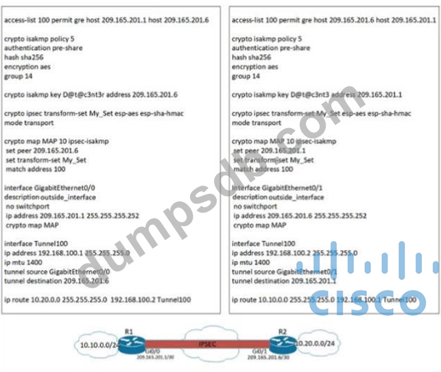 A network engineer must simplify the IPsec configuration by enabling IPsec over GRE using IPsec profiles.
