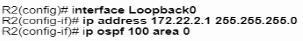 An engineer must configure a new loopback Interface on a router and advertise the interface as a fa4 in OSPF.