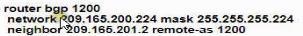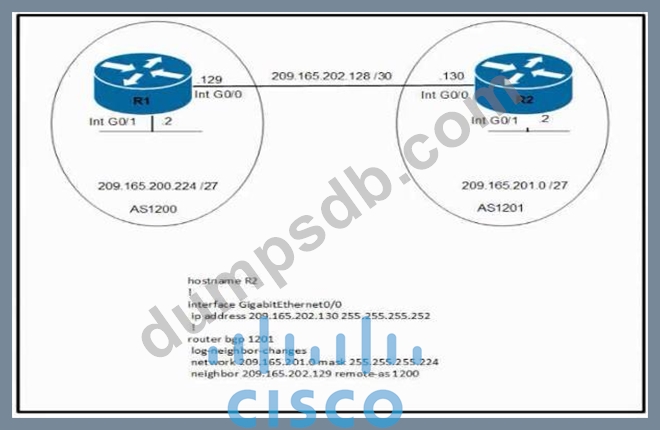 Which command set must be applied on R1 to establish a BGP neighborship with R2 and to allow communication from R1 to reach the networks?