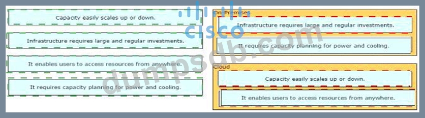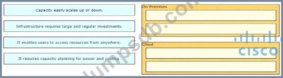 Drag and drop the characteristics from the left onto the infrastructure deployment models on the right.